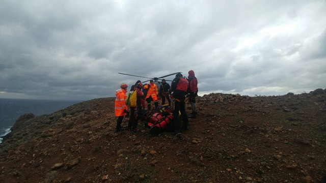 Στη συνέχεια στελέχη της Μονάδας Υποβρυχίων Αποστολών του Λ.Σ. – ΕΛ.ΑΚΤ. με τη συνδρομή αλιευτικού σκάφους καθώς και ταχύπλοου σκάφους, παρά τις εξαιρετικά αντίξοες καιρικές συνθήκες που επικρατούσαν στην περιοχή (βόρειοι άνεμοι εντάσεως 8 έως 9 bf), προέβησαν στον ασφαλή απεγκλωβισμό και διάσωση του πληρώματος.