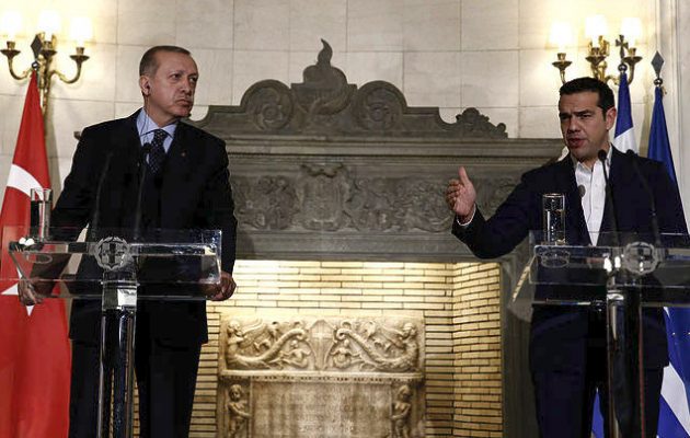 »Αυτό μπορούμε να το κάνουμε μόνο στη βάση του αμοιβαίου σεβασμού. Του σεβασμού του διεθνούς δικαίου και του θεμέλιου λίθου των σχέσεων μας, της Συνθήκης της Λωζάννης» σημείωσε ο Αλέξης Τσίπρας μετά το τετ α τετ με τον Τούρκο Πρόεδρο, Ρετζέπ Ταγίπ Ερντογάν, ενώ λίγο αργότερα απαντώντας σε ερώτηση σχεδόν… τον τρόλαρε, αφού ανέφερε ότι δεν έχει γίνει απολύτως κατανοητό τι εννοεί ο Τούρκος Πρόεδρος.