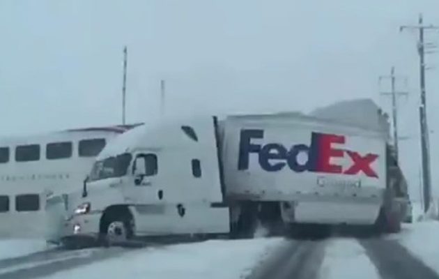 Κάμερα αυτοκινήτου κατέγραψε την συγκλονιστική στιγμή κατά την οποία ένα επιβατηγό τρένο συγκρούεται με νταλίκα γνωστής μεταφορικής εταιρείας, στη Γιούτα των Ηνωμένων Πολιτειών της Αμερικής.