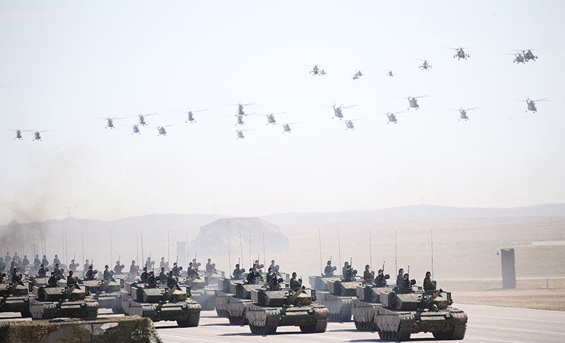 «Ο κόσμος δεν είναι ειρηνικός, χρειάζεται να υπάρχει ισχυρή άμυνα και ο ηρωικός στρατός μας έχει την δυνατότητα να υπερασπίζεται με επιτυχία την εθνική κυριαρχία, την ασφάλεια και τα εθνικά μας συμφέροντα και να βοηθά με την παρουσία του στην παγκόσμια ειρήνη», τόνισε ο Σι Τζιπίνγκ.