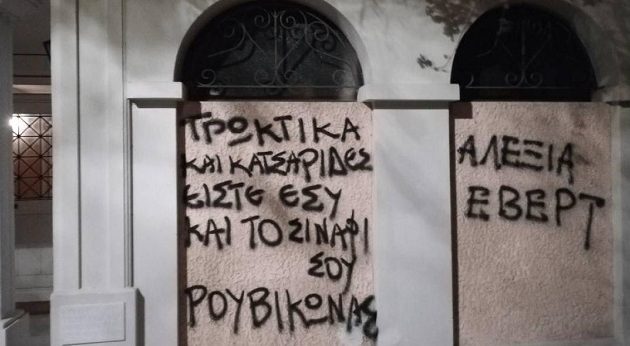 «Τρωκτικά και κατσαρίδες είστε εσύ και το συνάφι σου» ανέφερε το σύνθημα που έγραψε ο Ρουβίκωνας, με αφορμή το σχόλιο της Αλεξίας Έβερτ.