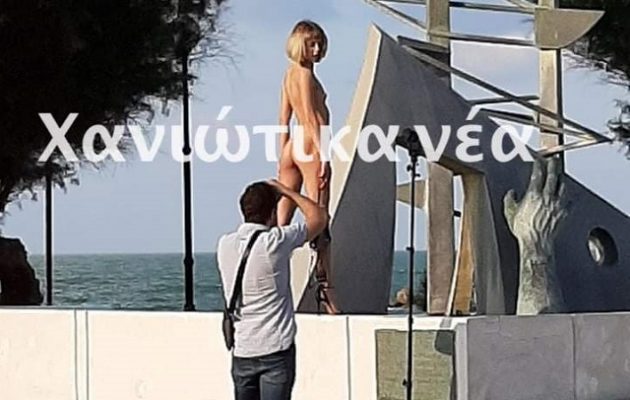 Έγινε κι αυτό στα Χανιά. Γυμνή φωτογράφιση στο μνημείο του ναυαγίου «Ηράκλειον» στην πλατεία Τάλω, πραγματοποιήθηκε το απόγευμα της Παρασκευής, μπροστά στα έκπληκτα μάτια περαστικών.
