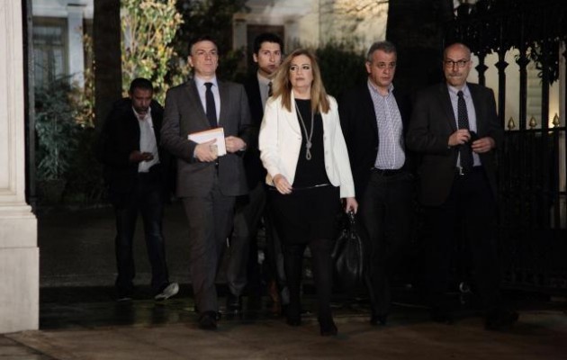 Άναυδοι έμειναν οι πολιτικοί αρχηγοί από την κίνηση της Φώφης, να ανοίξει την τσάντα της και να μοιράσει σε όλους συμπεριλαμβανομένου του ΠτΔ, από ένα χειρόγραφο σημειωματάκι με το οποίο απαιτούσε να συμπεριληφθεί στο κοινό ανακοινωθέν η άποψη της Δημοκρατικής Συμπαράταξης, ότι η παρούσα κυβέρνηση, δεν μπορεί να “τα βγάλει πέρα” με το προσφυγικό και ότι η μόνη λύση είναι η συγκρότηση εθνικής ενότητας. Κατευθύνθηκε και προς τους πρακτικογράφους για να το συμπεριλάβουν στα πρακτικά ώστε να ξέρουν όλοι οι … “ενδιαφερόμενοι” ότι επιτέλεσε την αποστολή της…