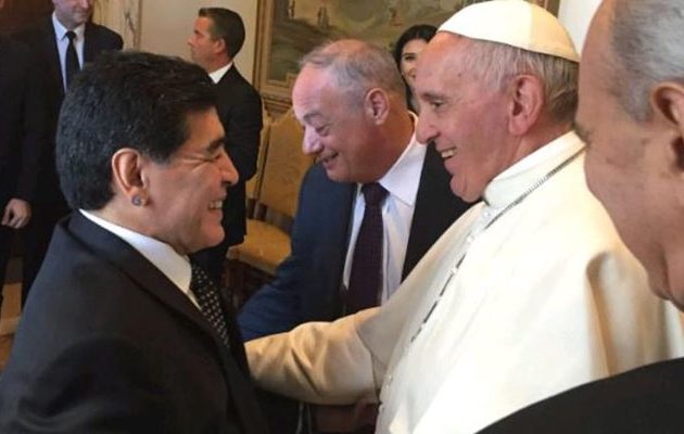 Με το ποδοσφαιρικό του ίνδαλμα και συμπατριώτη του, τον Ντιέγκο Μαραντόνα συναντήθηκε την Τρίτη στο Βατικανό ο Πάπας Φραγκίσκος.