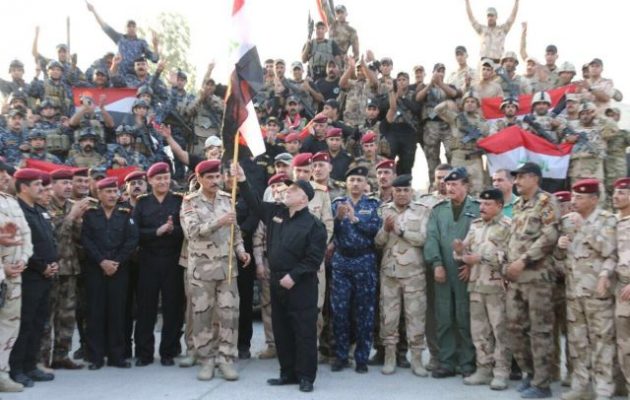 Ο πρωθυπουργός του Ιράκ Χάιντερ αλ Αμπάντι ανακήρυξε και επίσημα τη νίκη των ιρακινών δυνάμεων επί «της βαρβαρότητας και της τρομοκρατίας» στη Μοσούλη, τη δεύτερη μεγαλύτερη πόλη της χώρας που κατείχαν οι τζιχαντιστές της οργάνωσης Ισλαμικό Κράτος, εκτιμώντας ότι σηματοδοτεί την «κατάρρευση» του υποτιθέμενου χαλιφάτου του.
