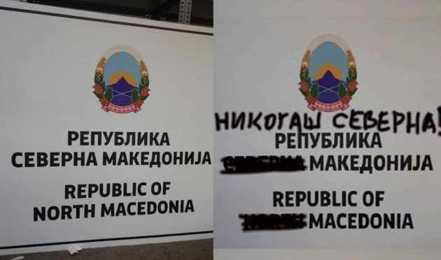 Πινακίδες με τη νέα ονομασία «Βόρεια Μακεδονία» βανδαλίστηκαν από σλαβόφωνους «αρχαιομακεδόνες» εθνικιστές που έσβησαν το «Βόρεια» και άφησαν σκέτο το «Μακεδονία».