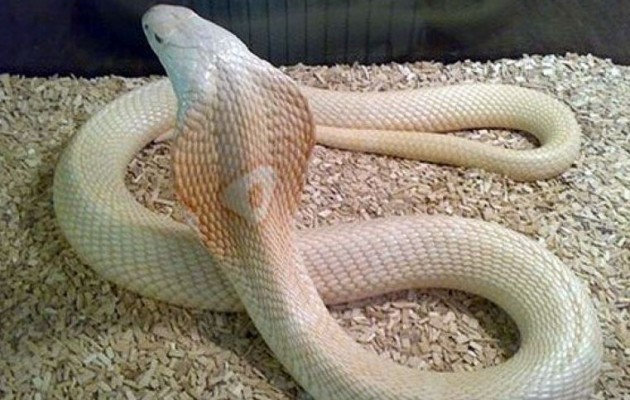 Από την φωτογραφία που κατάφερε να τραβήξει ένας Καλιφορνέζος η λευκή κόμπρα φαίνεται πολύ μεγάλη.