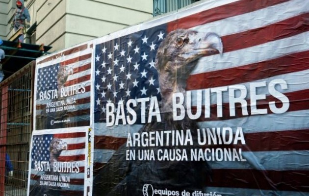 Οι γύπες, τα κοράκια αυτά του διεθνούς χρηματιστηριακού κεφαλαίου, αγόρασαν κρατικά ομόλογα της Αργεντινής σε υποτιμημένες τιμές, αλλά απαιτούν την αποπληρωμή τους στο ακέραιο.