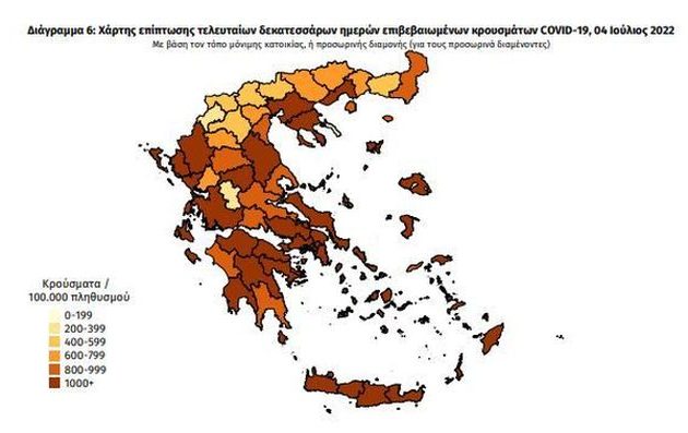 Σκεφτόμουν τι μας έλεγαν, όπως ότι ο κορωνοϊός το καλοκαίρι είναι σε ύφεση. Όλη η Ελλάδα ΚΑΤΑΚΟΚΚΙΝΗ, στον θεό τα κρούσματα, το 61,76% στις ΜΕΘ πλήρως εμβολιασμένοι.