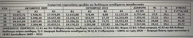 Αν συνυπολογιστεί η αύξηση του Δείκτη Τιμών Καταναλωτή (ΔΤΚ) κατά 19,1% -από 95,4% (9ος/2009) στο 114,5% (9ος/2022) σε σταθμισμένες τιμές 2020 (100%)- τότε η μείωση κυμαίνεται αντίστοιχα από το 28,72% στο 45,14%.
