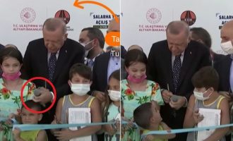 Ο Ερντογάν χτυπάει εκνευρισμένος στο κεφάλι 10χρονο σε εγκαίνια γέφυρας (βίντεο)