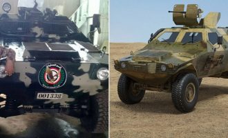 Σύροι στρατιώτες χρησιμοποιούν σε πολεμικές επιχειρήσεις τους ένα τουρκικό τεθωρακισμένο όχημα που πήραν λάφυρο πέρσι. Πρόκειται για ένα τουρκικής κατασκευής…