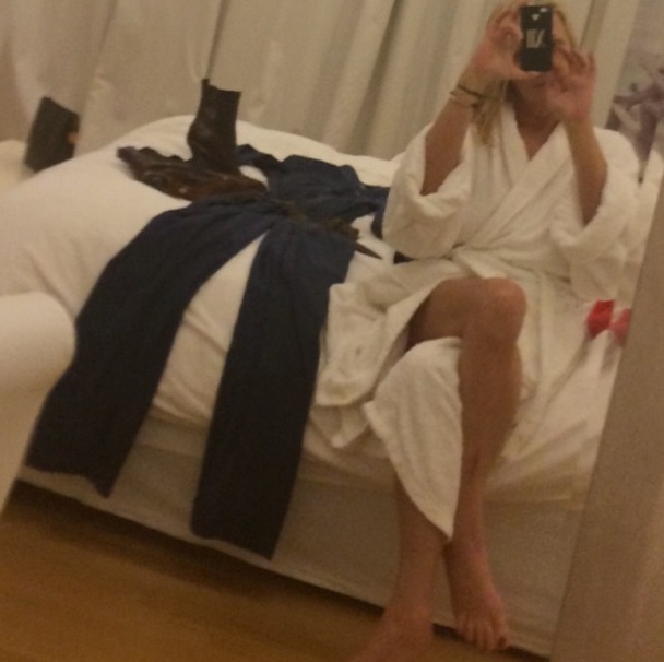 Ετοιμαζόταν να βγει έξω, είχε ήδη απλώσει πάνω στο κρεβάτι τα ρούχα που θα φόραγε και απλά η selfie με το μπουρνούζι ήρθε αυθόρμητα…