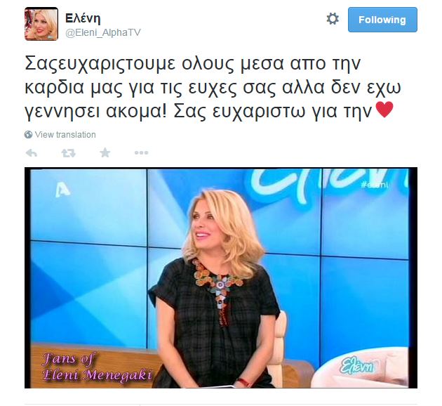 Με ένα tweet απάντησε η Ελένη Μενεγάκη στις φήμες που την ήθελαν να γέννησε το τέταρτο παιδί της, καρπό του έρωτά της με τον Ματέο Παντζόπουλο.