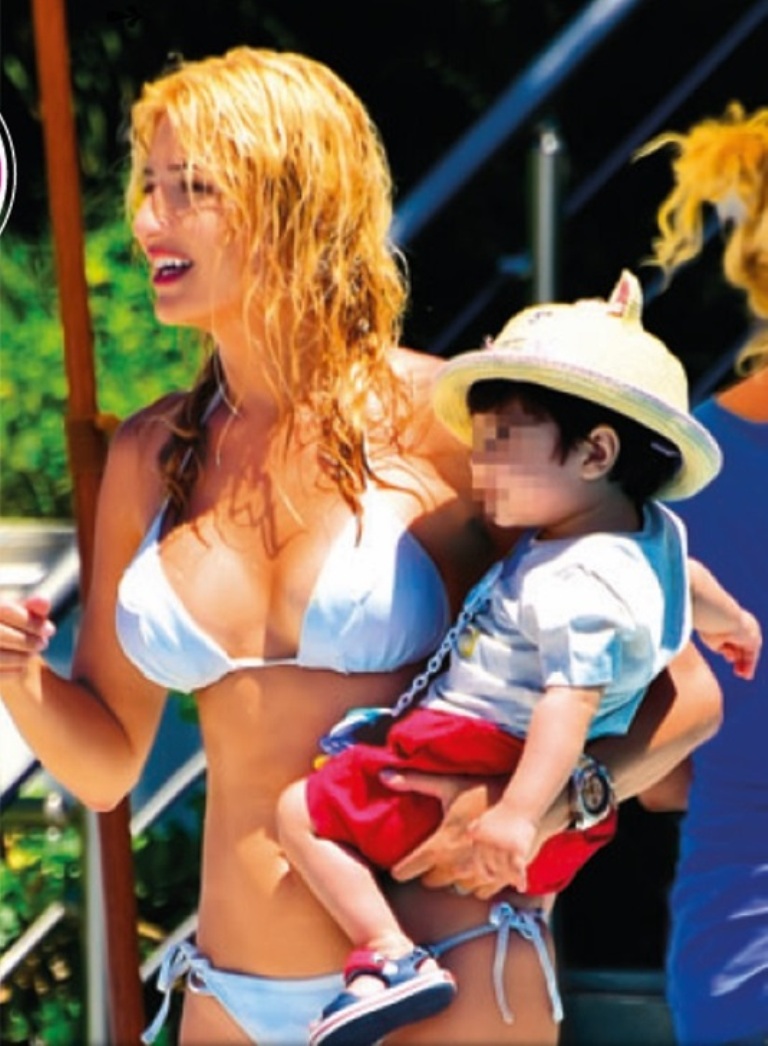 Μετά την εκπομπή η παρουσιάστρια έβαλε ένα μικροσκοπικό, λευκό μπικίνι και δεν σταμάτησε τις βουτιές και τα παιχνίδια με τον 13ων μηνών Δημήτρη και τον 4ων ετών Γιάννη.