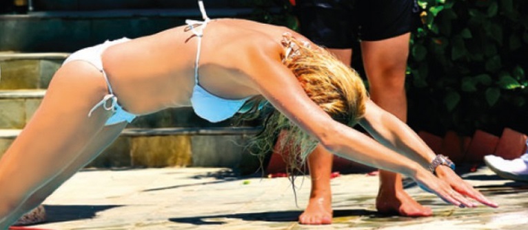 Η παρουσιάστρια απαθανατίστηκε από τον φωτογραφικό φακό του περιοδικού You με τον σύζυγό της Γιώργο Λιάγκα και τα δύο τους παιδιά να παίζουν όλοι μαζί στην πισίνα του ξενοδοχείου που τους φιλοξένησε για μία εβδομάδα στην Κυλλήνη, από όπου μετέδιδαν και την εκπομπή τους.
