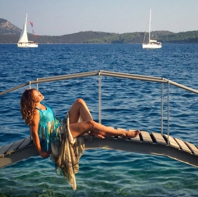 Η ίδια μάλιστα έχει ανεβάσει αρκετές καλοκαιρινές φωτογραφίες της στο Instagram. Στην πιο πρόσφατη από αυτές, φορώντας μπικίνι και παίζοντας με τα κύματα γράφει: «Εδώ αφήστε με!».