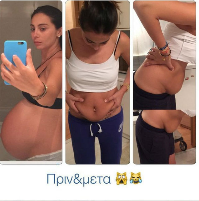 Ακομπλεξάριστη, η πρώην σταρ Ελλάς πόσταρε στο λογαριασμό της στο δημοφιλές μέσο κοινωνικής δικτύωσης μια σειρά φωτογραφιών με το πριν και το μετά, όπου πριν η κοιλιά της μέρες ή και ώρες πριν γεννήσει και μετά, το… σήμερα.