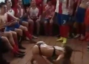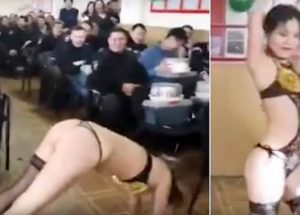 Η ξανθιά καλλονή, με το αψεγάδιαστο κορμί αποφάσισε να κάνει στριπτίζ σ’ ένα διυλιστήριο πετρελαίου για τις ανάγκες ενός διαφημιστικού.