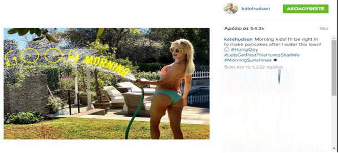 Η Κέιτ Χάντσον φόρεσε το μπικίνι μαζί με το υπέροχο χαμόγελό της και αποφάσισε να ποτίσει τον κήπο της. Παρόλο που είναι 36 χρονών, παραμένει το ίδια γλυκιά και γοητευτική, όπως την είχαμε αγαπήσει μέσα από την ταινία «Πώς να χάσεις έναν άντρα σε 10 ημέρες».