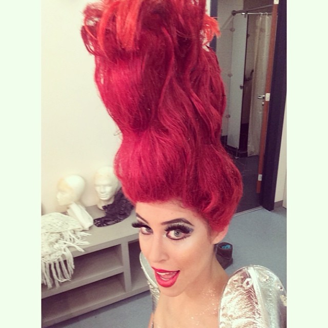Η τραγουδίστρια με κατακόκκινα μαλλιά και έντονο μακιγιάζ ποζάρει για το μιούζικαλ Priscilla.