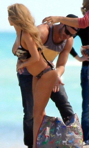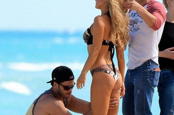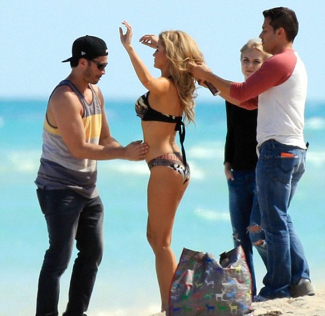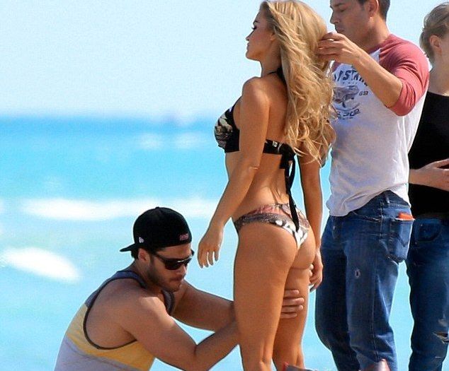 Τι να κάνει ο άμοιρος για να βγάλει το ψωμάκι του βάζει από πάνω έως κάτω μπρονζέ χρώμα στην Τζοάνα Κρούπα ώστε το αποτέλεσμα να είναι άψογο για την φωτογράφιση με μαγιό!