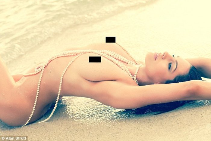 Η 36χρονη καλλονή πόζαρε ολόγυμνη σε παραλία, ντυμένη μόνο με τα μαργαριτάρια της, εντυπωσιάζοντας τον φωτογράφο Άλαν Στράτ, αφού το αποτέλεσμα που βλέπετε, τραβήχτηκε μέσα σε δέκα λεπτά