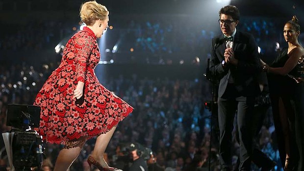 Εισέβαλε στη σκηνή την ώρα που η τραγουδίστρια Αντέλ παραλάμβανε το βραβείο Γκράμι.