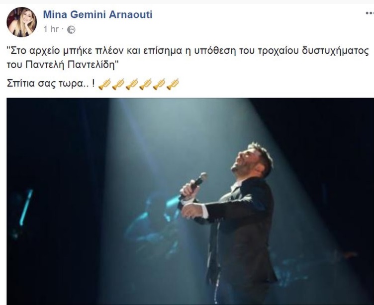 «Στο αρχείο μπήκε πλέον και επίσημα η υπόθεση του τροχαίου δυστυχήματος του Παντελή Παντελίδη. Σπίτια σας τώρα.. !».