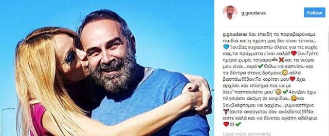 »Να είστε καλά και να δίνεται αγάπη αδέλφια» γράφει μαζί με μία φωτογραφία με τη γυναίκα του Νάταλι Κάκκαβα.