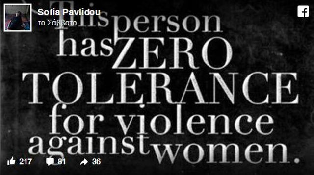 Συγκεκριμένα, δημοσίευσε μια εικόνα στην οποία γράφει: «This person has zero tolerance for violence against women».