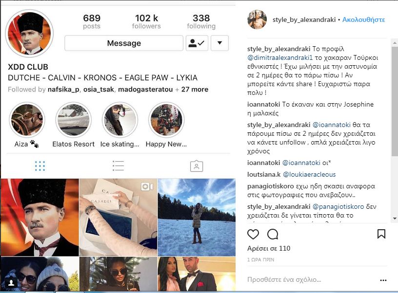 Μετά τη Δέσποινα Καμπούρη, την Κόνι Μεταξά, τη Ζοζεφίν και την Ευαγγελία Αραβανή, τώρα και η Δήμητρα Αλεξανδράκη έπεσε θύμα Τούρκων εθνικιστών στο Ιnstagram.