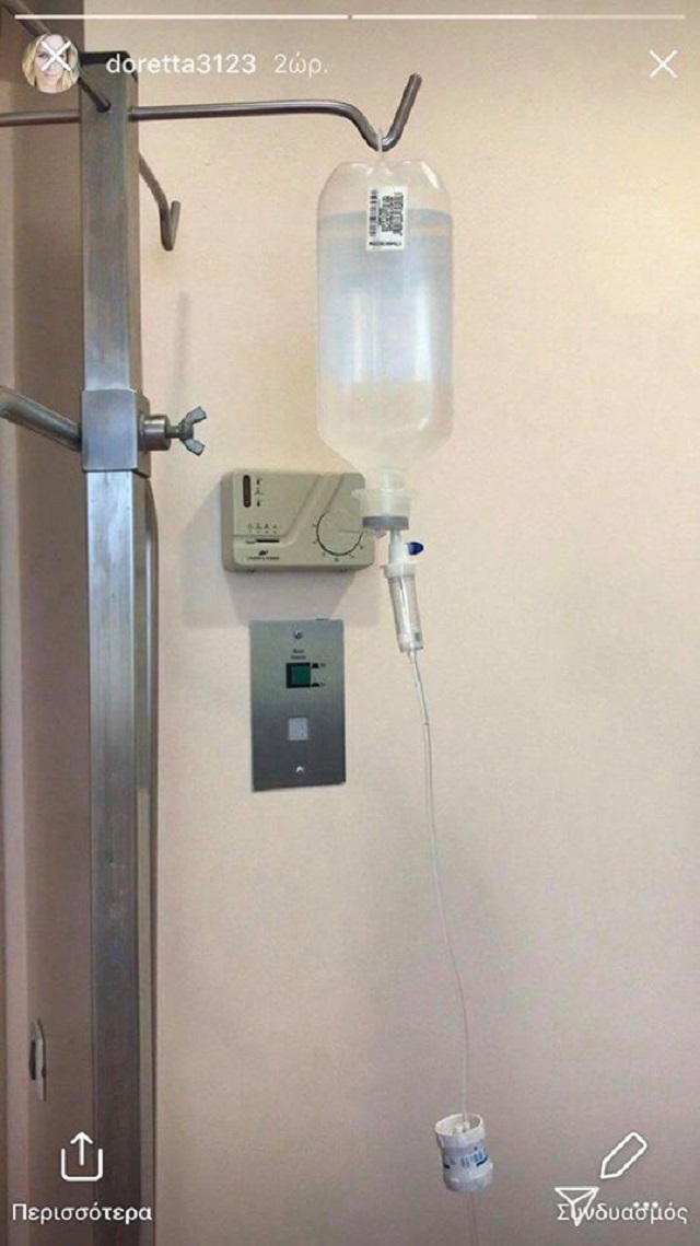 Η ηθοποιός και παρουσιάστρια, ανέβασε στα stories της μία φωτογραφία από δωμάτιο νοσοκομείου, όπου φαίνεται ένας ορός.