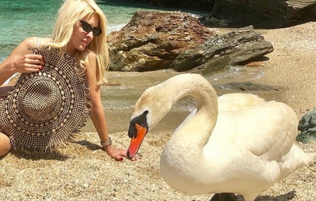 Το Σάββατό της το περνάει στην παραλία κάνοντας βουτιές και ηλιοθεραπεία.