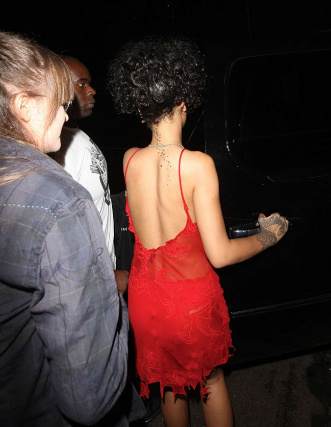 Για μια ακόμη φορά η δημόσια εμφάνιση της Ριάνα ήταν… διάφανη! Με το αγαπημένο της στυλ, see- through φόρεμα, χωρίς σουτιέν και με ασορτί εσώρουχο, έκανε την εμφάνισή της η τραγουδίστρια σε πρόσφατη έξοδό της στο “Hooray Henry’s nightclub” στο Δυτικό Hollywood.