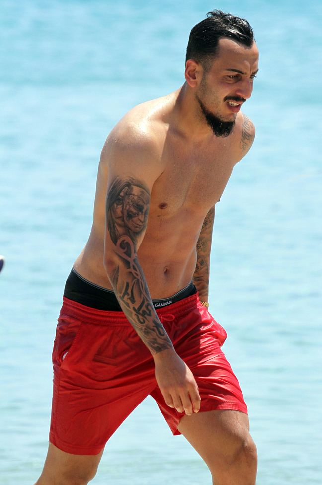 Οι ποδοσφαιριστές έβγαλαν τα απίστευτα καλογυμνασμένα κορμιά τους στην παραλία για να λιαστούν και να δροσιστούν.