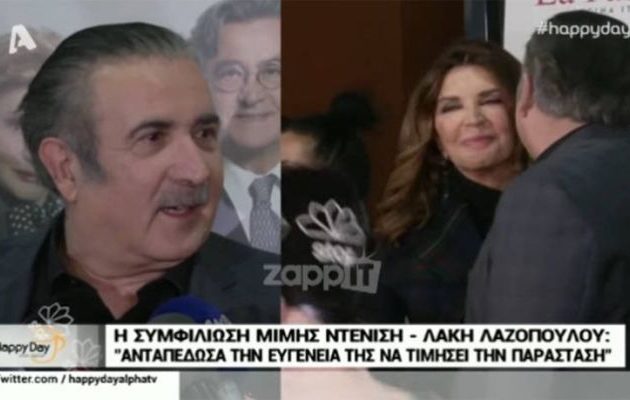 Ο κ. Λαζόπουλος σκηνοθετεί την παράσταση, η κ. Ντενίση πήγε να δει όλους τους φίλους της που πρωταγωνιστούν σε αυτή.