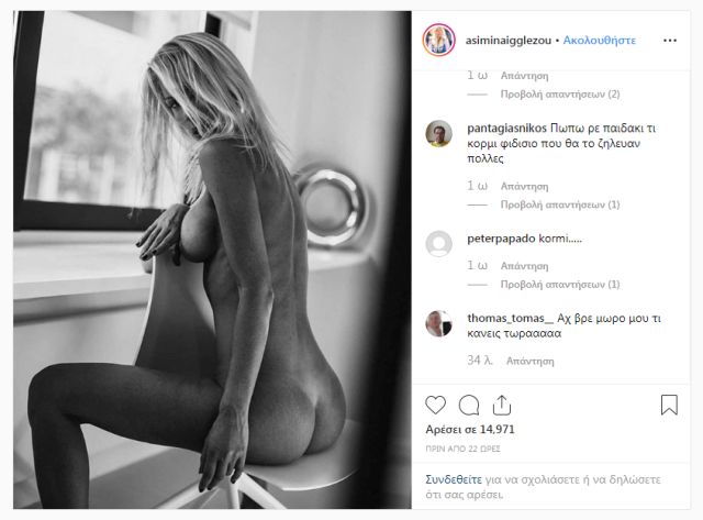 Είναι όμως από τις σπάνιες φορές που βλέπουμε ολόκληρη την Ασημίνα Ιγγλέζου σε μια τόσο αποκαλυπτική φωτογραφία.