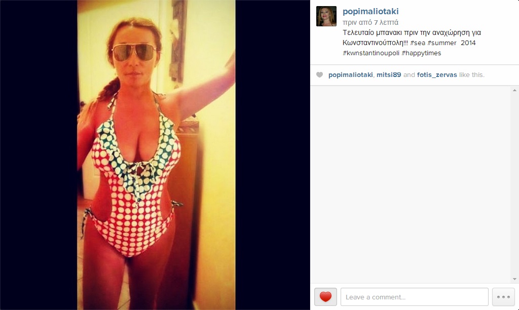 «Τελευταίο μπανακι πριν την αναχώρηση για Κωνσταντινούπολη!!!», έγραψε η Πόπη Μαλλιωτάκη.