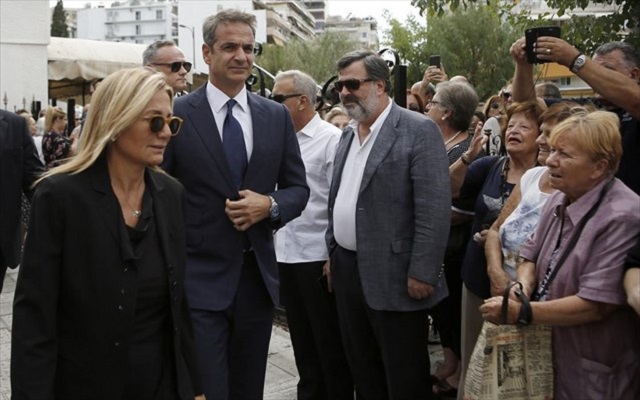 Το «παρών» στην εξόδιο ακολουθία έδωσε και ο πρωθυπουργός, Κυριάκος Μητσοτάκης με τη σύζυγό του.