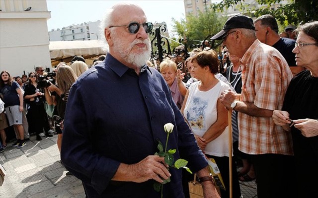 Η εξόδιος ακολουθία ξεκίνησε στις 15.30, ενώ το παρών έδωσαν, μεταξύ άλλων, ο πρωθυπουργός Κυριάκος Μητσοτάκης με τη σύζυγό του Μαρέβα και δεκάδες μουσικοί και καλλιτέχνες.