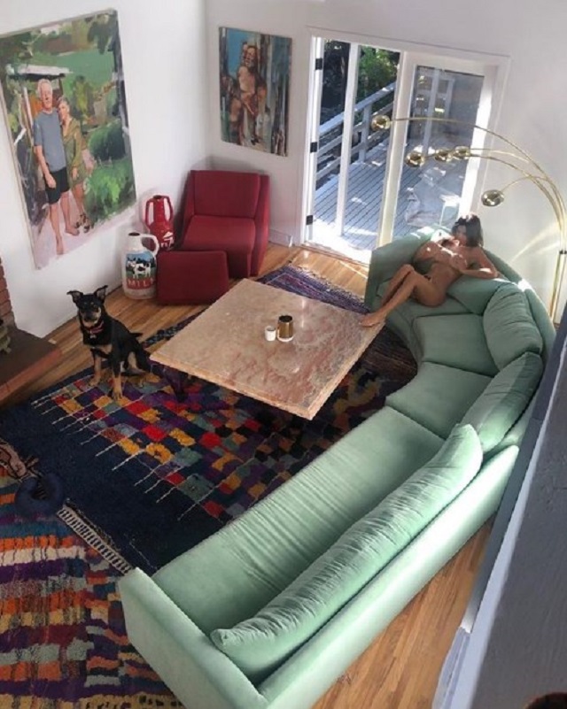 Συγκεκριμένα η 28χρονη Ρατακόβσκι ανέβασε μια πανοραμική λήψη του σαλονιού της, με την ίδια να απολαμβάνει γυμνή τον καφέ της φροντίζοντας τα επίμαχα σημεία με την κούπα και τα χέρια της