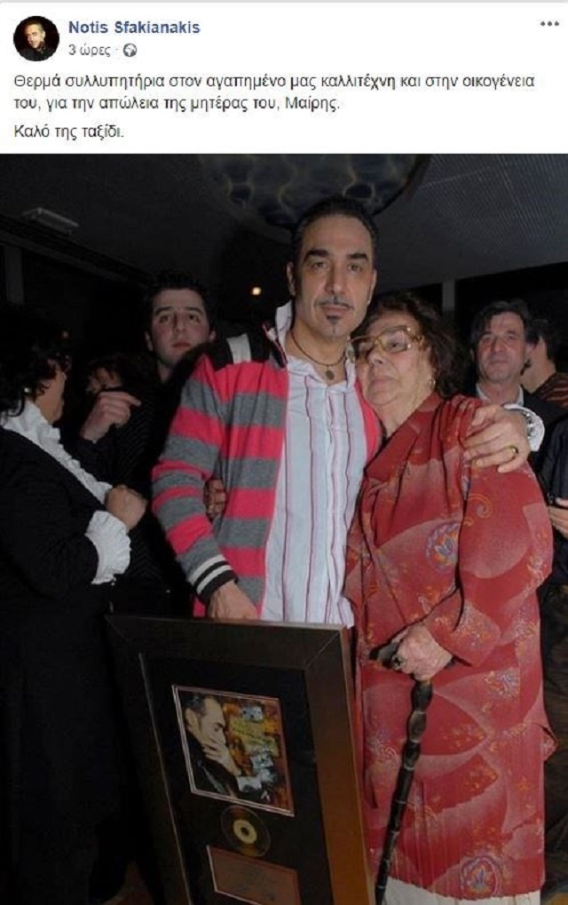 «Θερμά συλλυπητήρια στον αγαπημένο μας καλλιτέχνη και στην οικογένεια του, για την απώλεια της μητέρας του, Μαίρης.