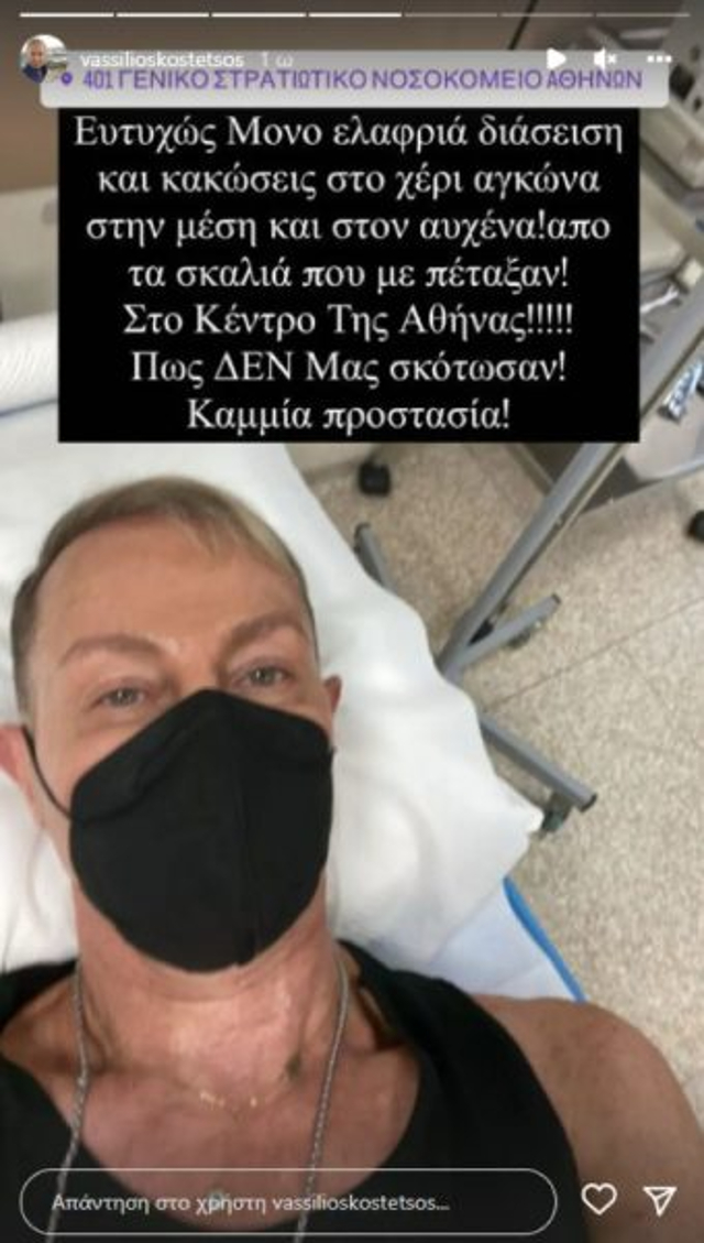 Τελικά ο Βασίλειος Κωστέτσος τη γλίτωσε με μια ελαφριά διάσειση και έναν τραυματισμό στο χέρι, στη μέση και τον αυχένα.
