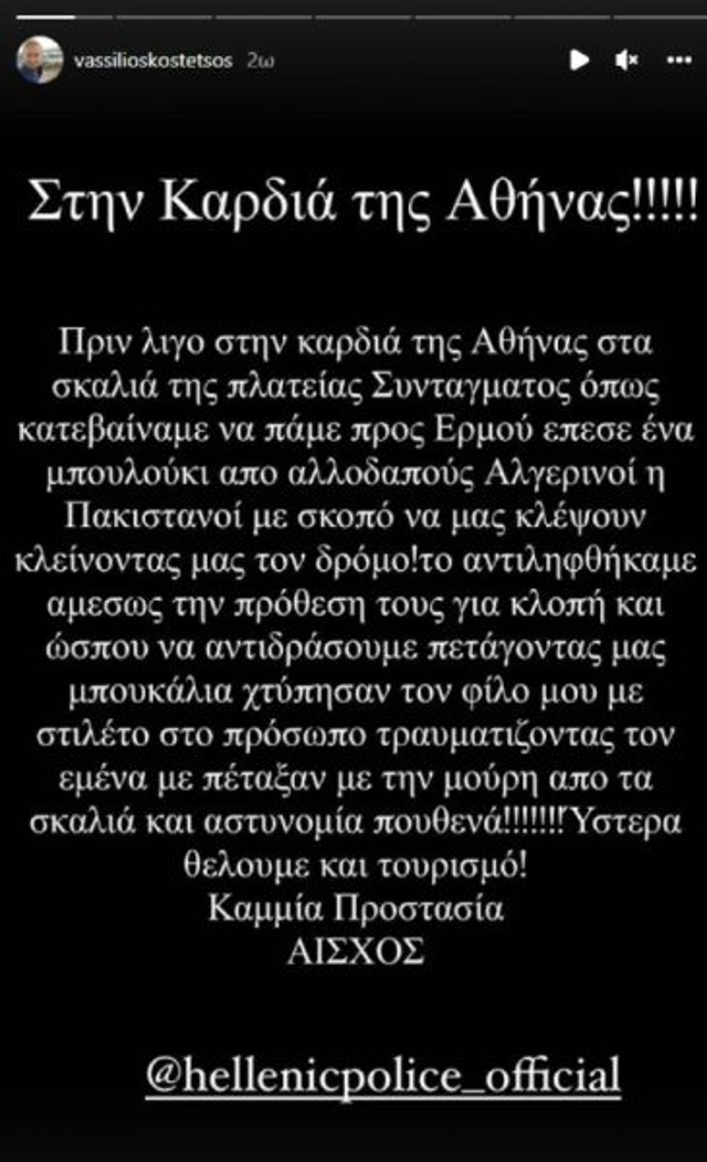 Σε καταγγελία προχώρησε ο Βασίλειος Κωστέτσος ότι το βράδυ της Πέμπτης (11/8) δέχτηκε επίθεση στο κέντρο της Αθήνας.