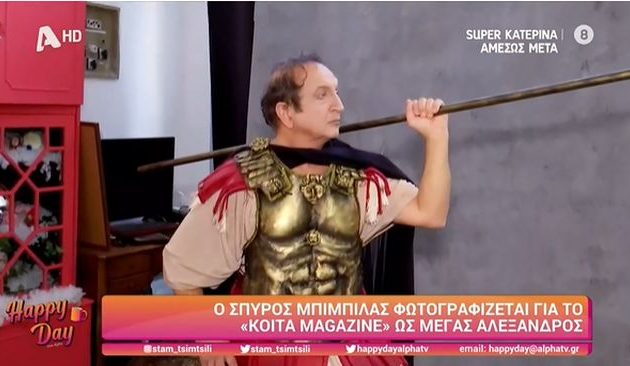 «Δεν το λένε μόνο όλοι πως μοιάζω με τον Μέγα Αλέξανδρο, το λέω και εγώ. Από τότε που έγινε η πρώτη μου φωτογράφιση πριν από πολλά χρόνια, που αυτή η φωτογραφία ήταν σχεδόν ίδια με το προφίλ του Μεγάλου Αλεξάνδρου, όλοι είδαν ότι υπάρχει αυτή η ομοιότητα, είπε ο Σπύρος Μπιμπίλας που αποφάσισε να ντυθεί Μέγας Αλέξανδρος για τις ανάγκες μίας φωτογράφισης.