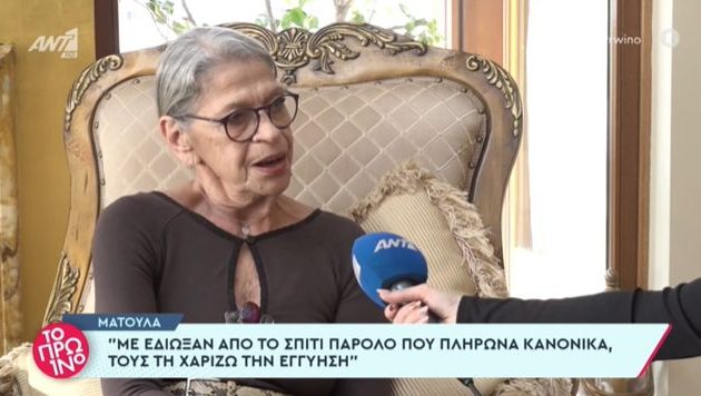 Μιλώντας στην εκπομπή «Το Πρωινό», η Ματούλα περιέγραψε την περιπέτειά της με το σπίτι που νοίκιαζε και τον ιδιοκτήτη του, ενώ αναφέρθηκε και στο γιο της, εξηγώντας ότι δεν έχουν σχέσεις.