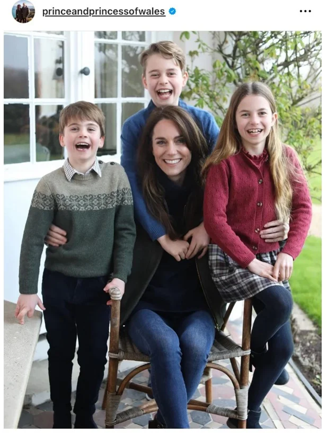 Η φωτογραφία η οποία έχει τραβηχτεί από τον πρίγκιπα Ουίλιαμ δείχνει την πριγκίπισσα να κάθεται σε καρέκλα και να ποζάρει μαζί με τα τρία της παιδιά χαμογελαστή.