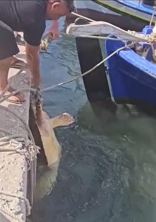 Ο άνδρας βγήκε αμέσως έξω και τα υπόλοιπα μέλη του συνεργείου κατάφεραν να απεγκλωβίσουν τη χελώνα.