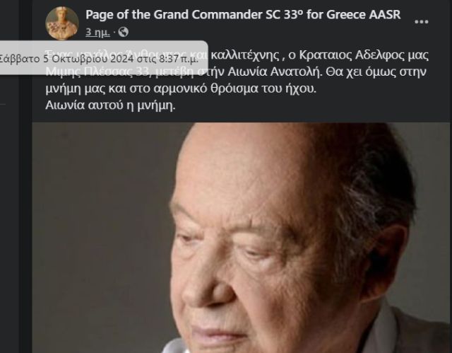 «Ένας μεγάλος Άνθρωπος και καλλιτέχνης, ο Κραταιός Αδελφός μας Μίμης Πλέσσας 33, μετέβη στην Αιωνία Ανατολή.